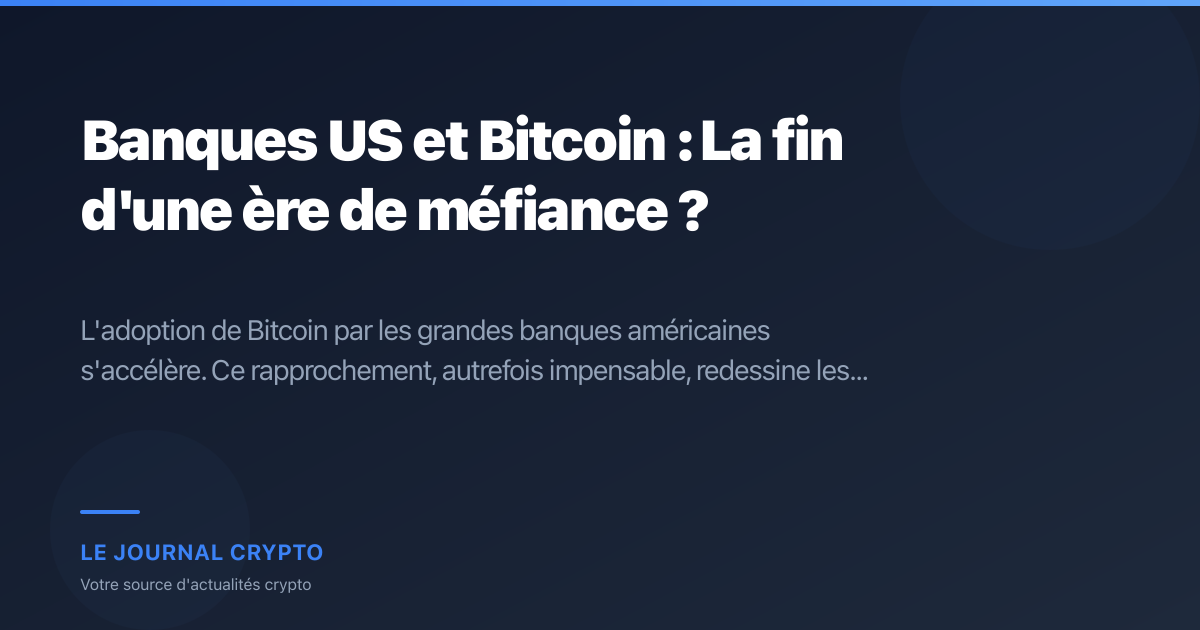 L'adoption de Bitcoin par les grandes banques américaines s'accélère. Ce rapprochement, autrefois impensable, redessine les contours de la finance.
