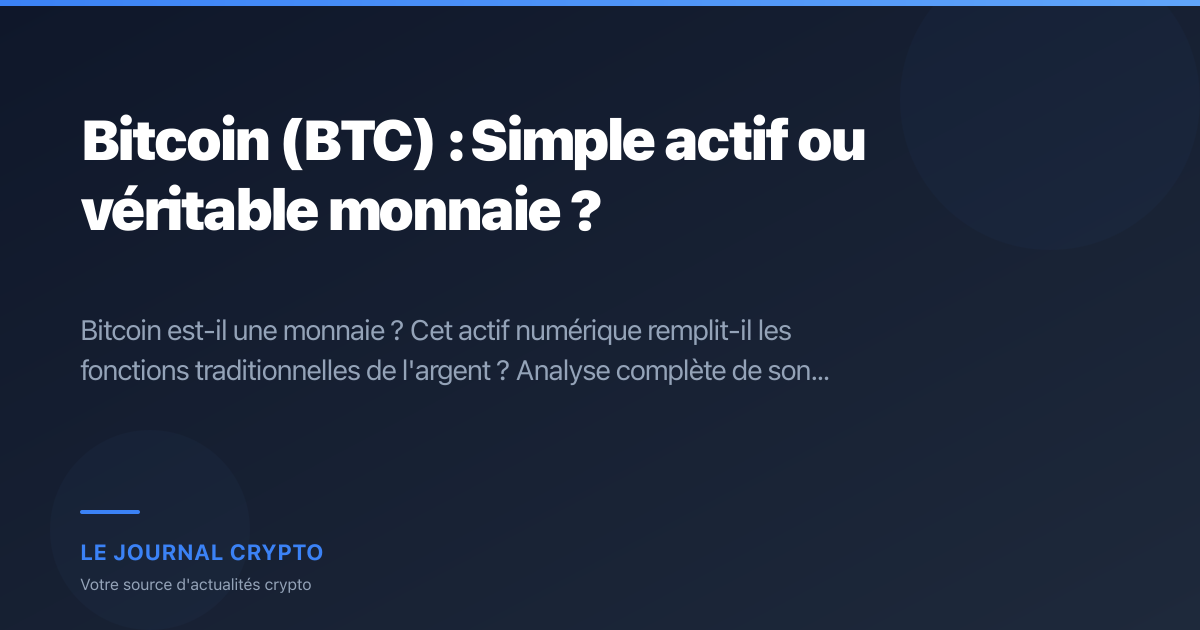 Bitcoin est-il une monnaie ? Cet actif numérique remplit-il les fonctions traditionnelles de l'argent ? Analyse complète de son rôle dans l'économie.