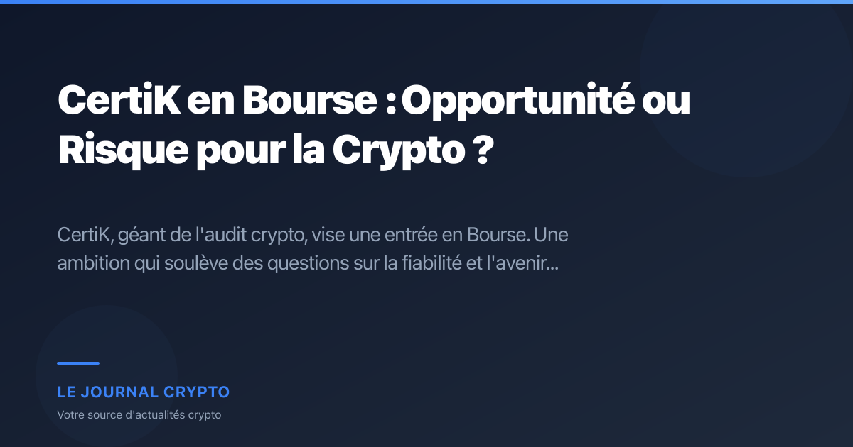 CertiK, géant de l'audit crypto, vise une entrée en Bourse. Une ambition qui soulève des questions sur la fiabilité et l'avenir de la sécurité blockchain.