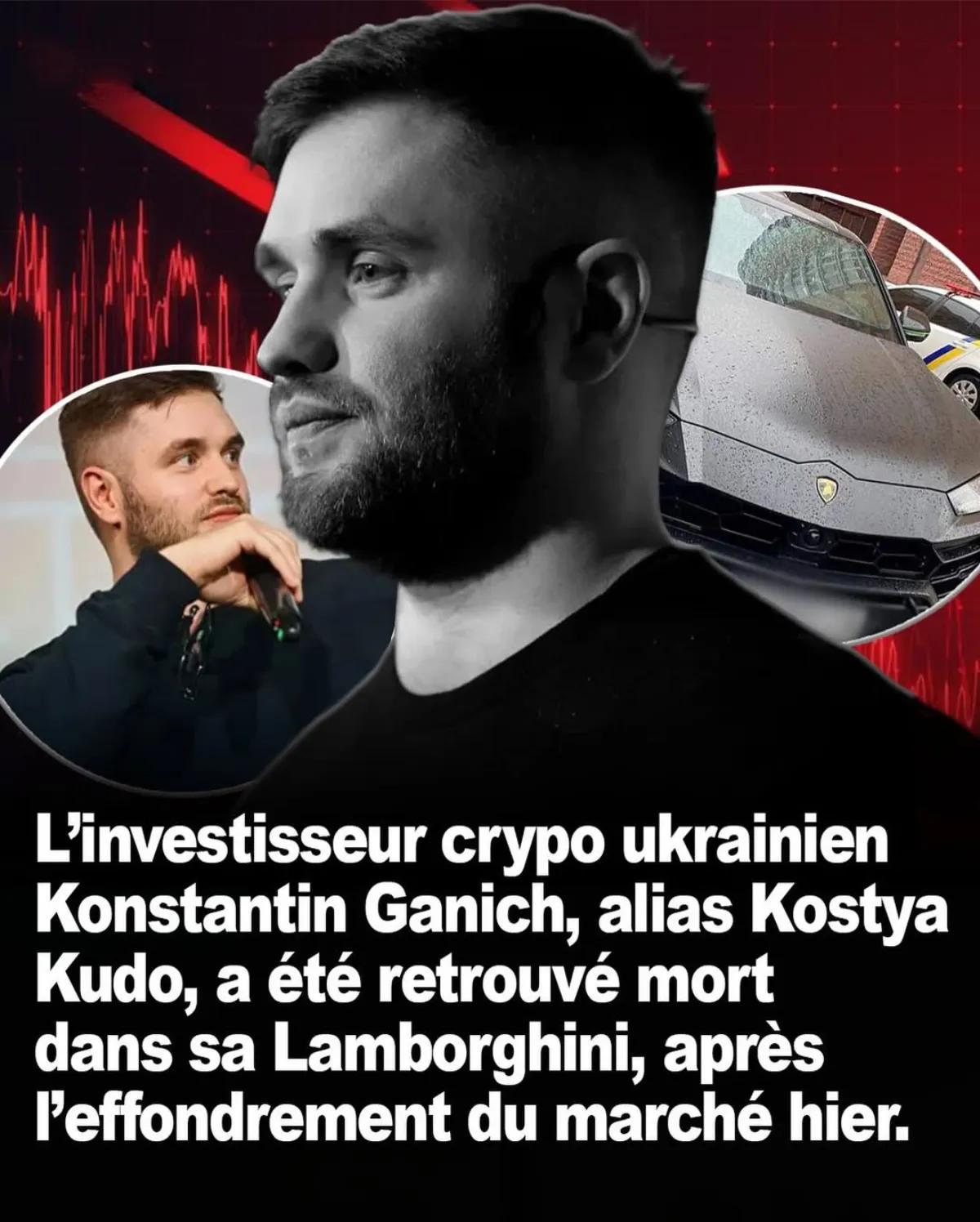 Konstantin Ganich (Kostya Kudo), crypto-trader ukrainien de 32 ans, retrouvé mort à Kiev le 11 octobre après le crash crypto de 19 milliards $. Santé mentale en question.