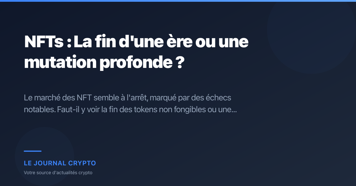 La "mort" des NFT, souvent proclamée, est en réalité la mort d'une certaine vision du NFT : celle d'un objet purement spéculatif et déconnecté du réel. La technologie sous-jacente, elle, est plus vivante que jamais. Elle est simplement en train de mûrir et de trouver sa véritable place en tant qu'infrastructure.