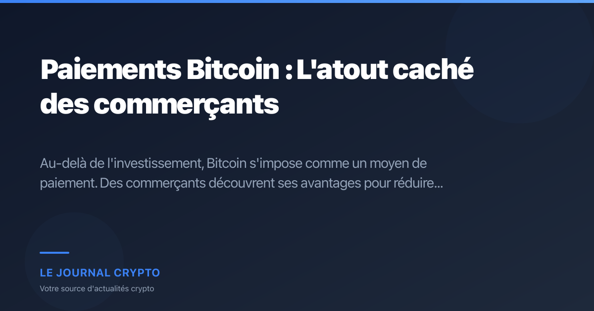Au-delà de l'investissement, Bitcoin s'impose comme un moyen de paiement. Des commerçants découvrent ses avantages pour réduire les frais et attirer une...
